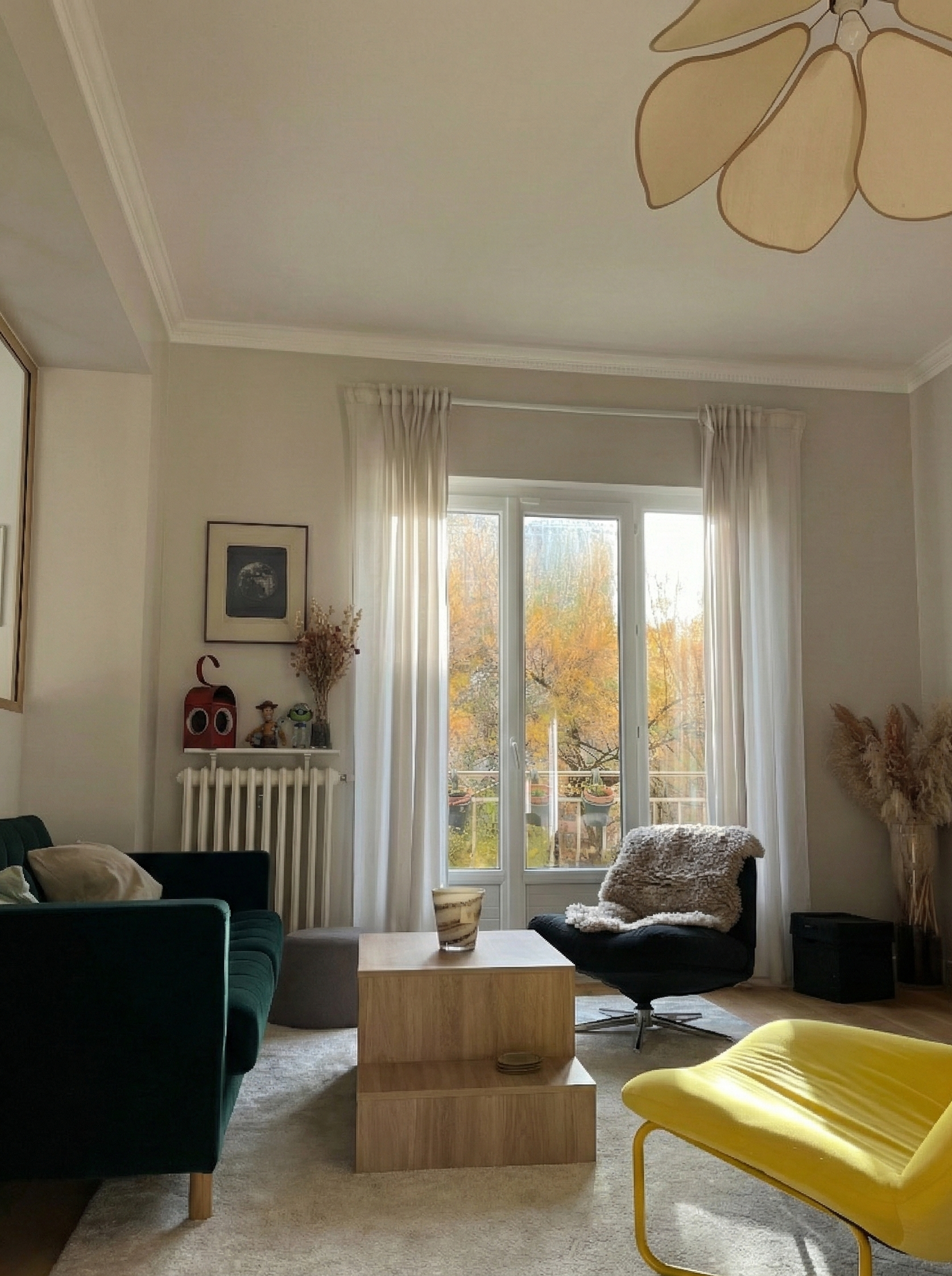 Les volumes respirent et la lumière circule librement entre le salon, la salle à manger et les grandes baies vitrées. Les teintes neutres sculptent une base apaisante, mise en mouvement par des touches subtiles de couleur. L’ensemble compose un espace vivant, accueillant et élégant sans jamais être figé.